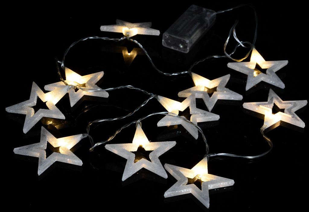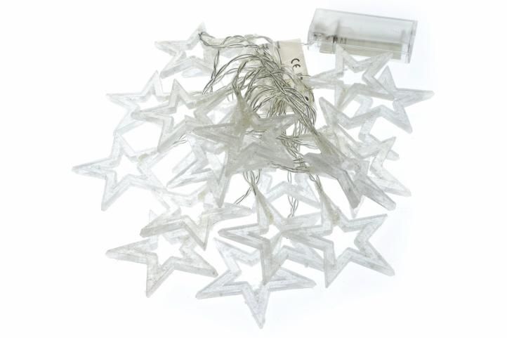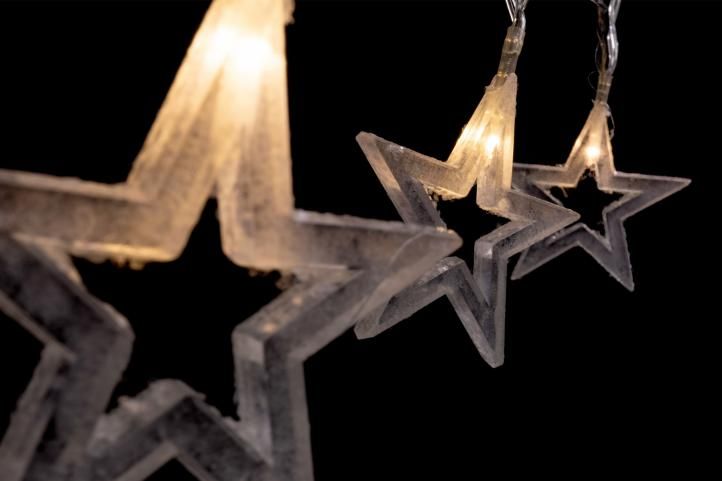 Lanțul decorativ cu stele este potrivit pentru interior. Este alimentat cu baterie, astfel încât îl puteți plasa oriunde.