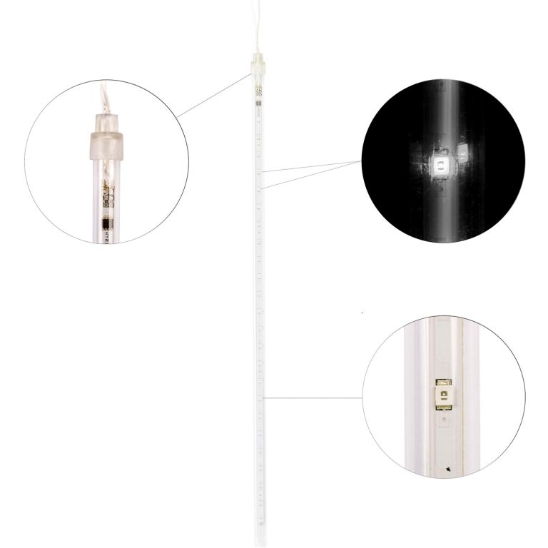 Iluminat decorativ uimitor cu LED-uri sub formă de zăpadă care cade, ploaie de stele sau o cascadă luminoasă - pe scurt, va aminti tuturor de ceva diferit, dar este garantat că va încânta pe toată lumea! Iluminatul cu LED-uri pentru exterior este ideal pentru a fi folosit în perioada Crăciunului ca decor pentru grădină, casă, terasă, balcon sau copaci din grădină.