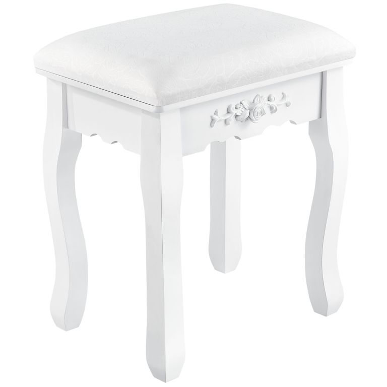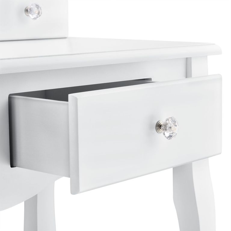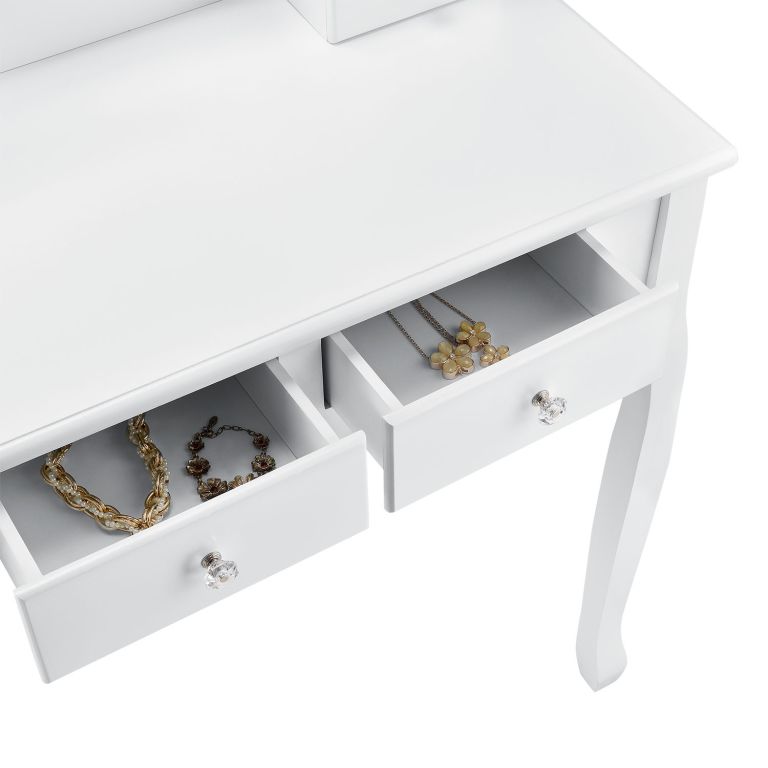 Masă de machiaj albă Julia cu sertare și taburet