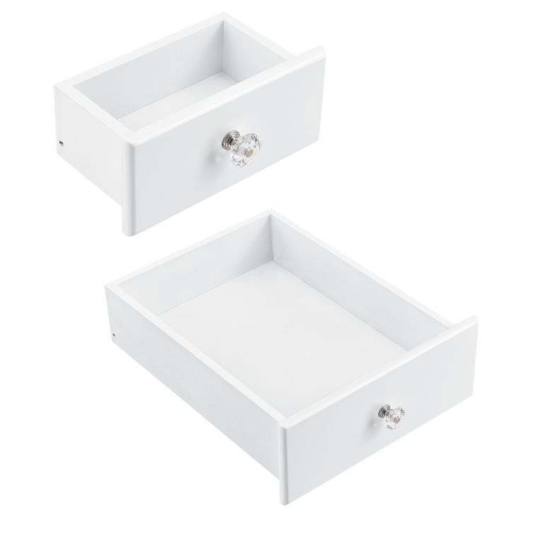 Construcția solidă din MDF și finisajul alb lăcuit asigură durabilitate și aspect elegant. Cele patru sertare oferă spațiu generos pentru organizarea cosmeticelor. Montajul este intuitiv, iar întreținerea ușoară.