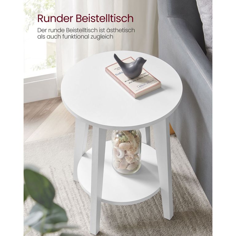 Completează-ți locuința cu o măsuță de cafea elegantă ce aduce prospețime și stil. Forma rotundă și culoarea albă creează o atmosferă luminoasă, iar cele două niveluri sunt perfecte pentru depozitare și expunere.