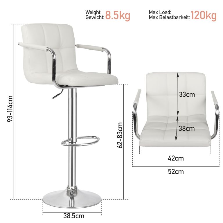 Transformă-ți spațiul cu aceste elegante scaune de bar, ideale pentru bucătărie, bar sau birou. Datorită mecanismului de reglare a înălțimii, sunt flexibile pentru toate tipurile de blat, în timp ce cadrul din oțel cromat și baza rotunjită, cu un diametru de 38,5 cm, asigură robustețe și stabilitate.