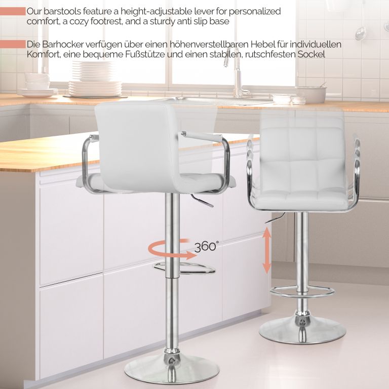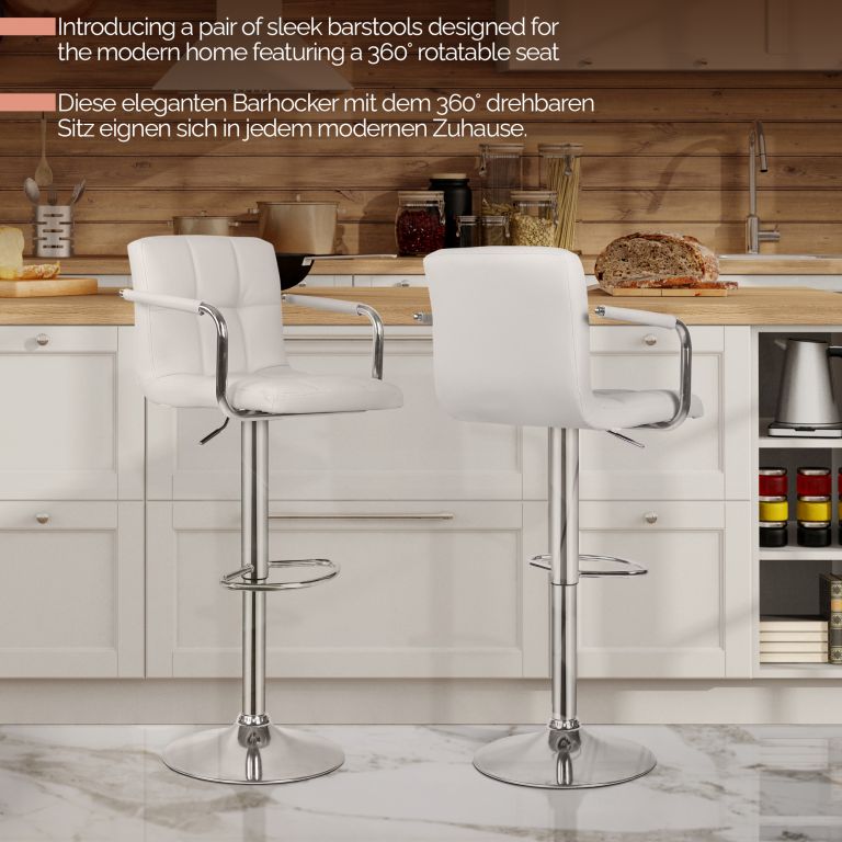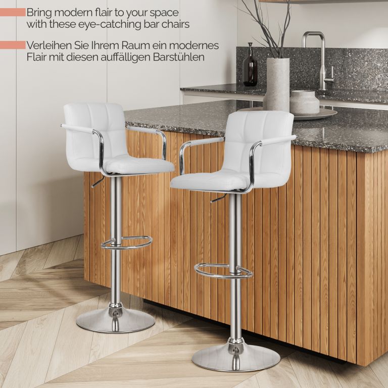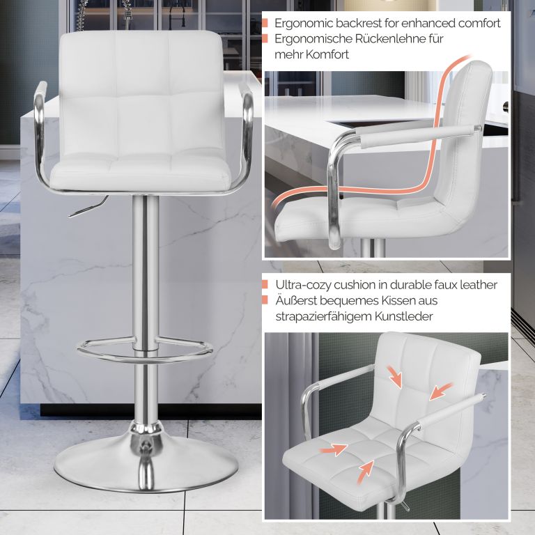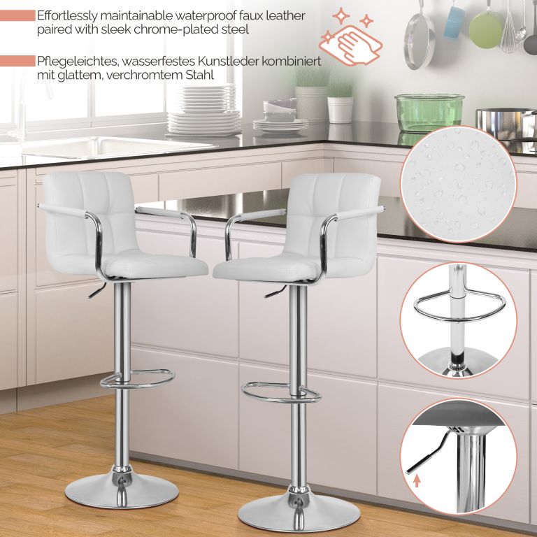 MIADOMODO Scaun de bar 2 buc, cu brațe, alb