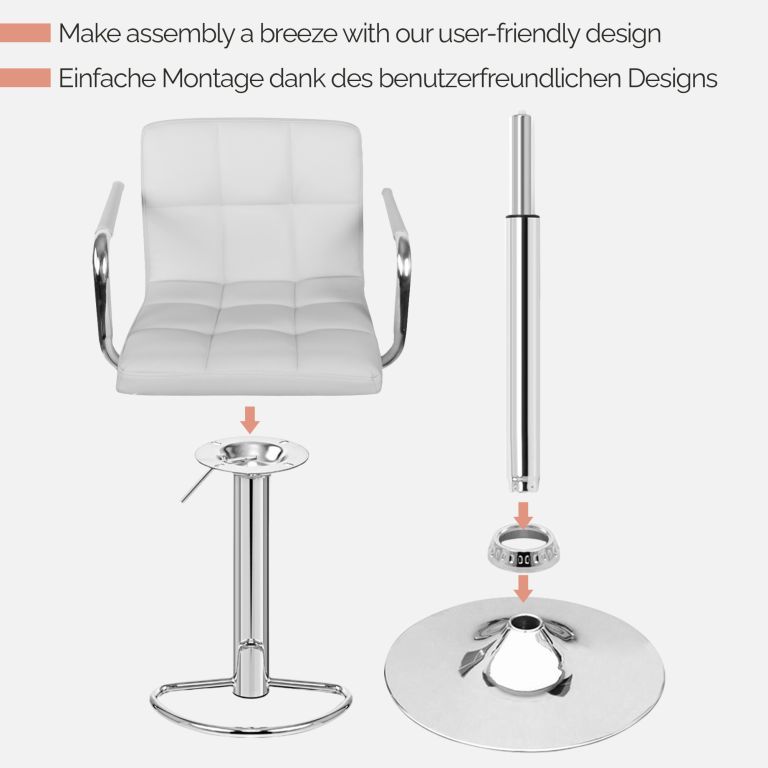 Fiecare set conține două scaune de bar, prevăzute cu: