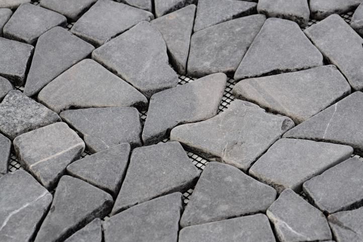 Mozaicul din piatră naturală este lipit de plasă, astfel încât și suprafețe mai mari pot fi ușor acoperite cu el. Puteți țiglă spațiile interioare și exterioare cu mozaicuri. Este ideal pentru placarea pereților și a pardoselilor.