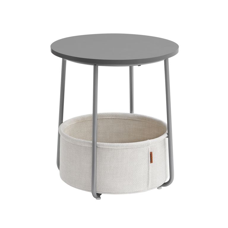Noptieră cu coș textil, structură oțel, 45x45x51 cm, gri/bej