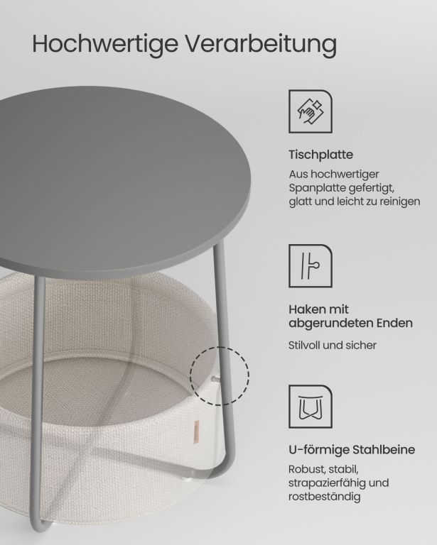 Structura solidă din oțel și blatul din PAL oferă rezistență și stabilitate. Montajul este facil datorită instrucțiunilor incluse. Picioarele reglabile protejează podeaua, iar coșul din poliester este durabil și sigur.