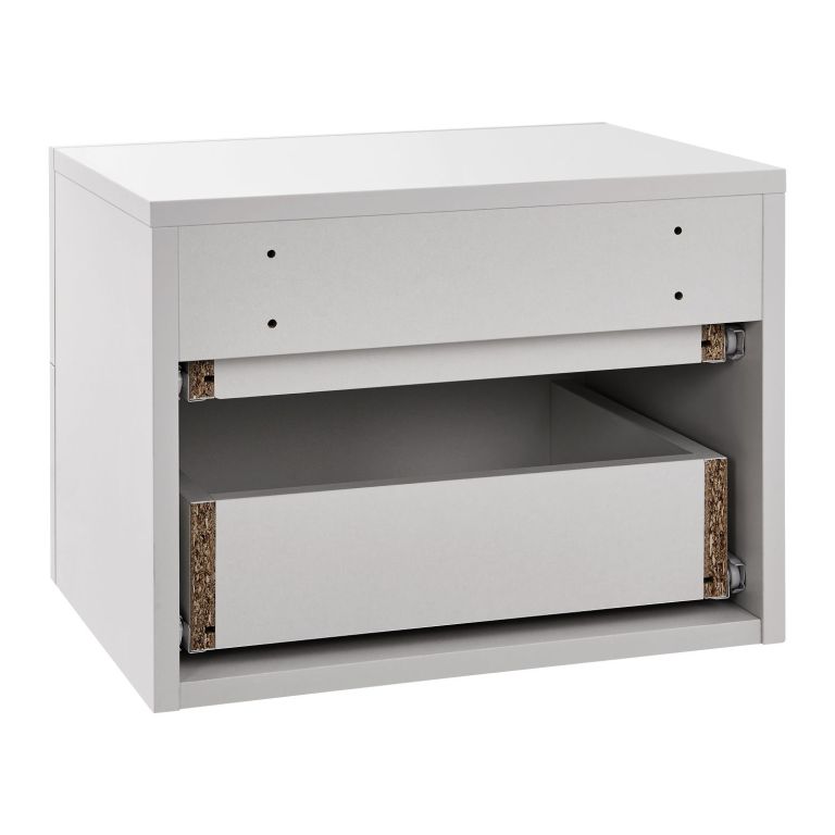 Fabricat din PAL de calitate, cu finisaj rezistent și ușor de întreținut, acest noptiér se montează simplu pe perete, economisind spațiu și facilitând curățenia dedesubt.