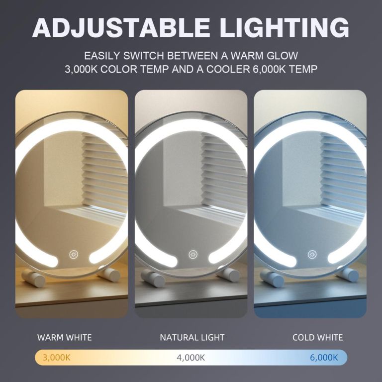 Obțineți iluminarea perfectă cu oglinda de masă cu LED-uri. Designul modern și comenzile tactile creează o atmosferă luxoasă pe care v-o puteți permit