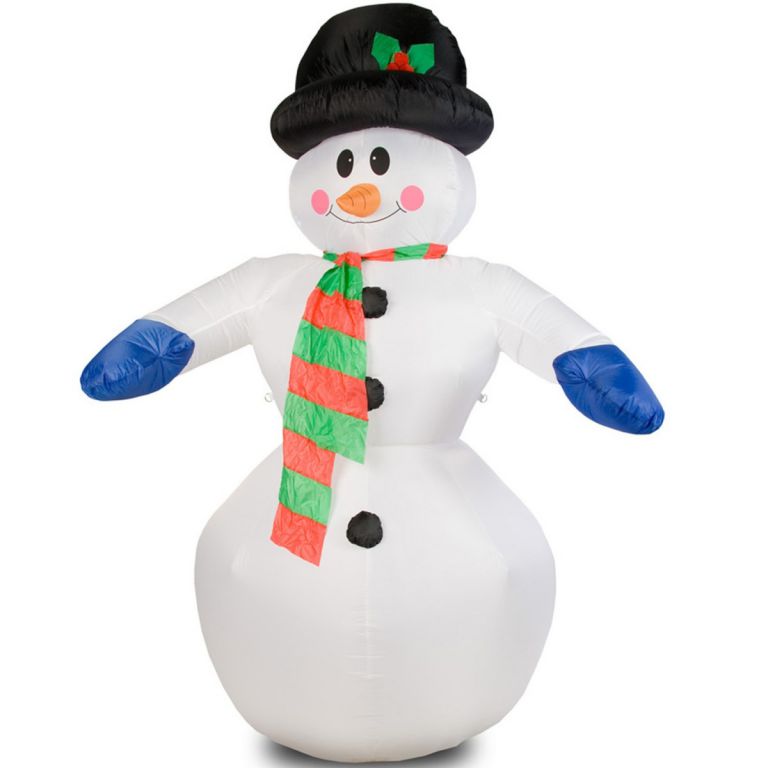 Acest om de zăpadă gonflabil înalt de 240 cm va ieși în evidență în grădina dvs. chiar și pe întuneric, deoarece este iluminat de douăzeci de LED-uri albe. Decorul este destinat utilizării în interior și exterior.