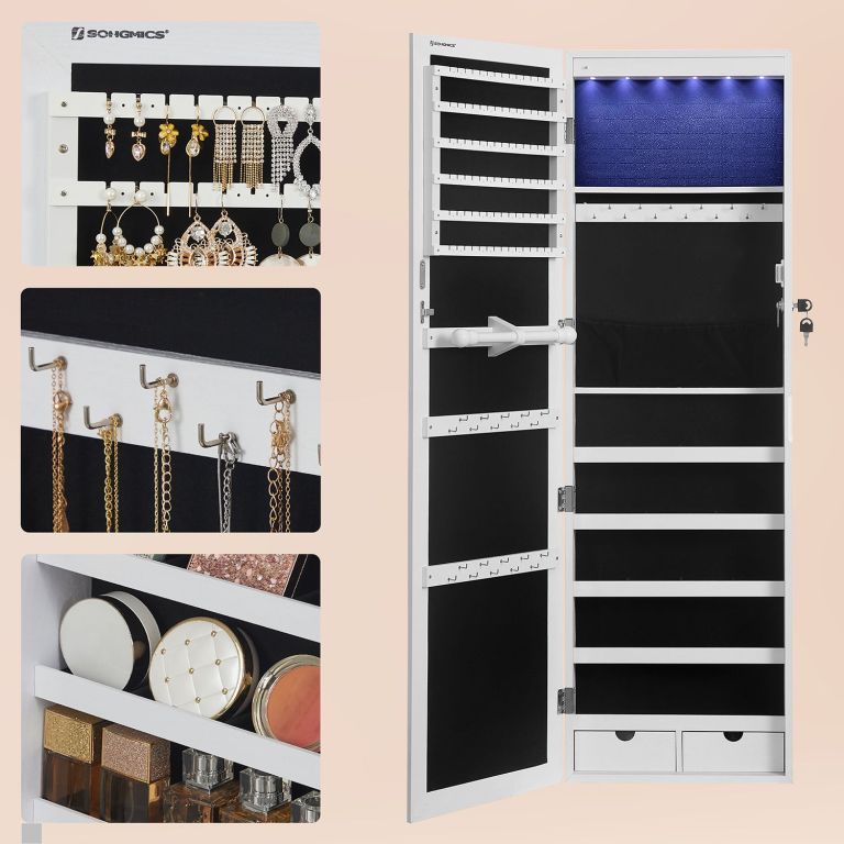 Păstrați bijuteriile ordonate și protejate cu acest organizator cu LED și oglindă.