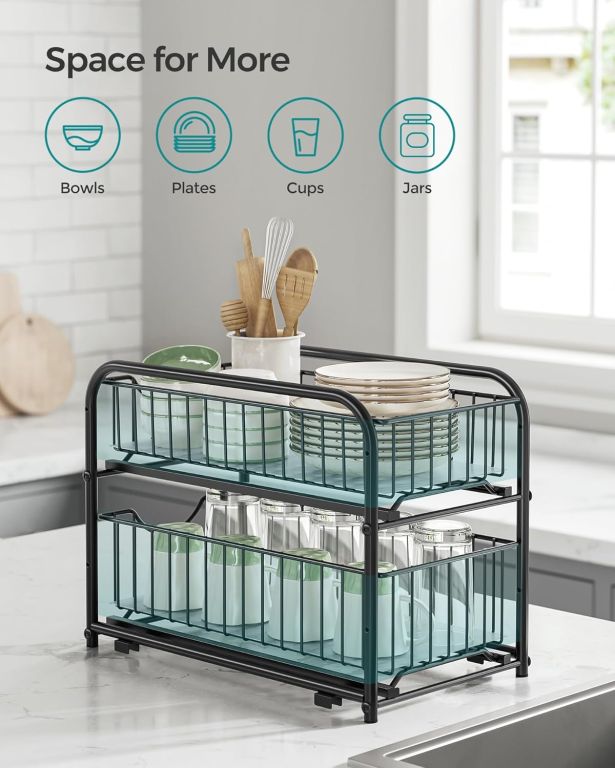 Transformați-vă spațiul cu un organizator elegant și practic! Fie că doriți să eliminați dezordinea din bucătărie sau să aduceți ordine în baie, acest organizator cu două niveluri vă oferă soluția perfectă. Designul său modern și coșurile glisante vă ajută să găsiți rapid tot ce aveți nevoie.