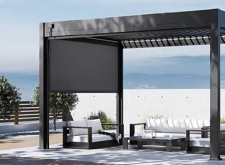 Construcția din aluminiu vopsit în câmp electrostatic și materialul textilenă rezistentă asigură durabilitate și întreținere ușoară. Paravanul se montează simplu, se acționează manual și se potrivește tuturor pergolelor bioclimatice. Testat pentru rezistență la vânt puternic, este alegerea perfectă pentru orice sezon.