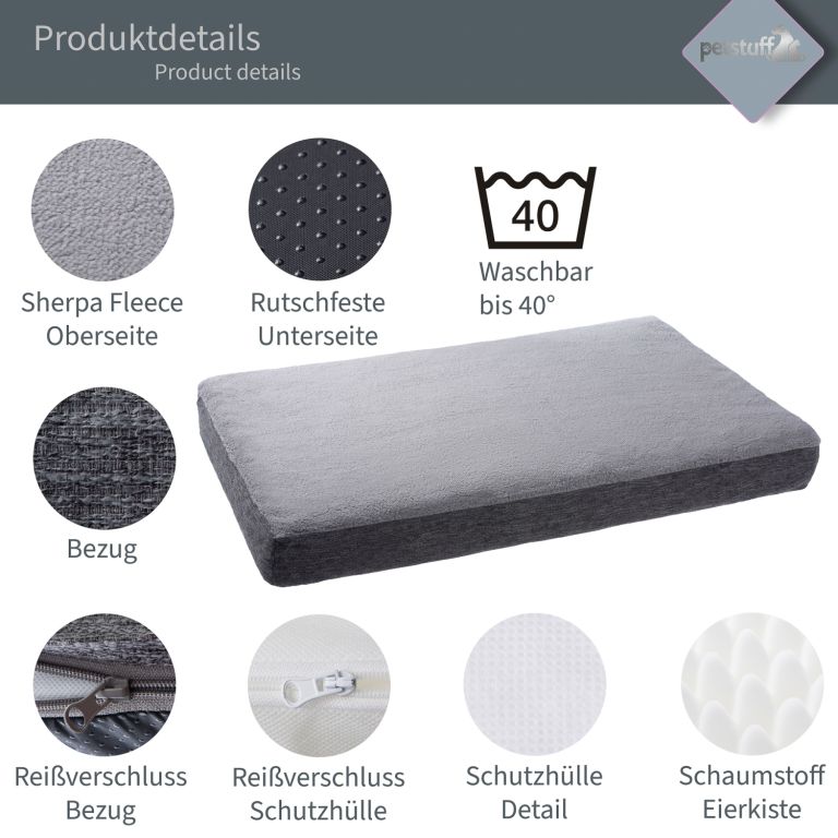 Oferiți animalului dumneavoastră de companie un spațiu de odihnă plăcut și sigur cu patul Petstuff. Designul său modern și culoarea gri deschis se integrează ușor în orice interior, iar animalele vor adora confortul și susținerea oferite. Este ideal atât pentru casă, cât și ca accesoriu în cușcă sau transportor, asigurând relaxare maximă și protecție pentru articulații.