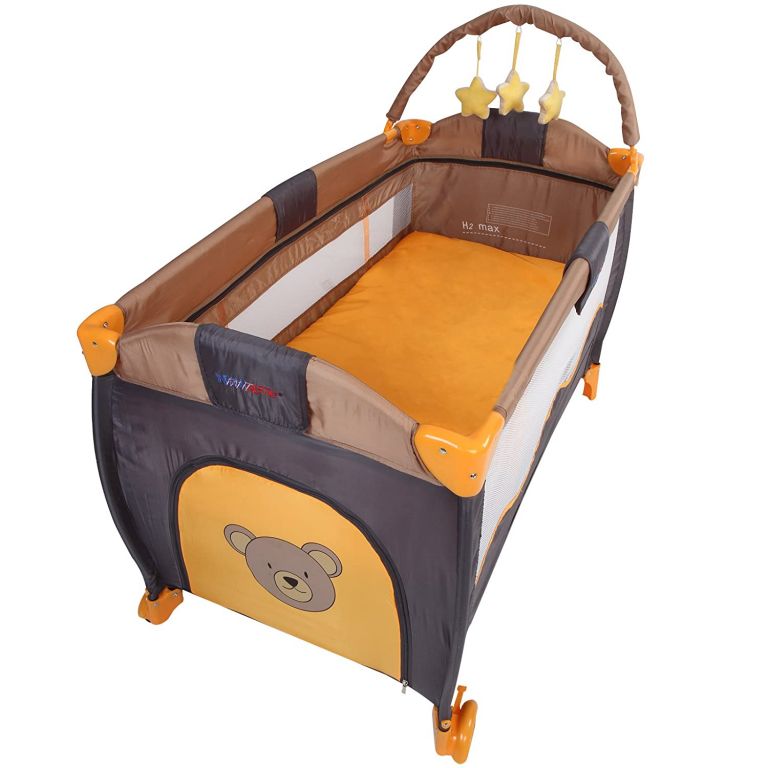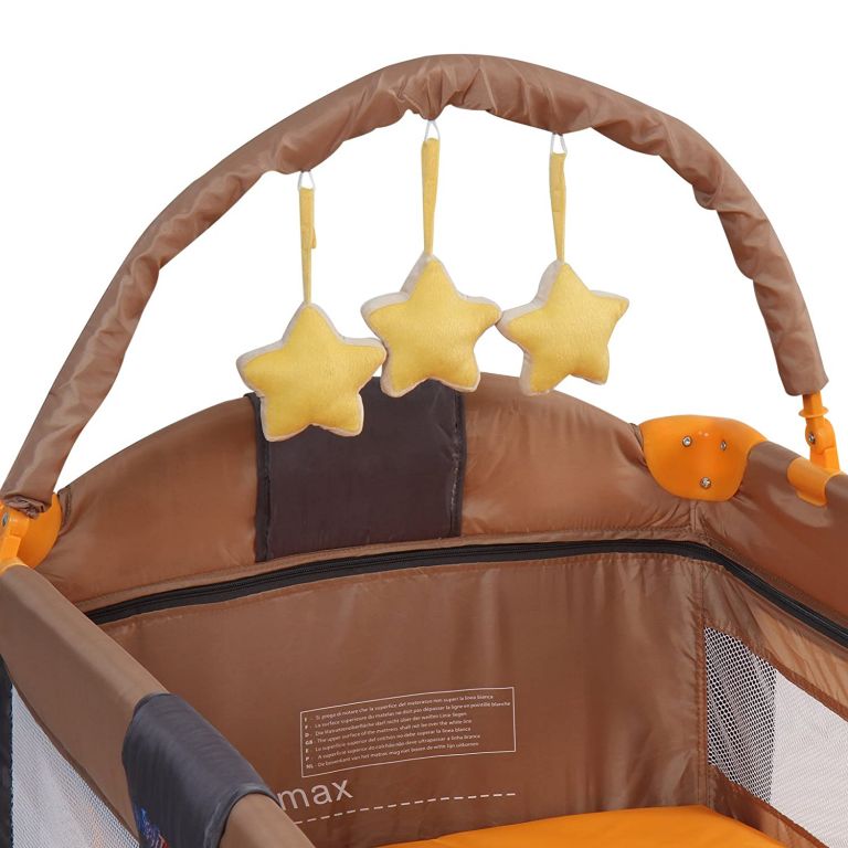 Acest pătuț este foarte practic. Acesta vă oferă un arc de joacă și un covor de schimb pentru bebeluși. Salteaua este căptușită. Arcul de joacă este prevăzut cu stele de pluș suspendate. Pătuțul are o intrare practică cu fermoar și spațiu de depozitare pe părțile din față, margini căptușite și colțuri rotunjite pentru bebeluși cu vârsta de până la 36 de luni sau pentru o greutate maximă de aproximativ 15 kg. Husa lavabilă vă oferă o întreținere ușoară. Pătuțul se pliază ușor și se depozitează economic.