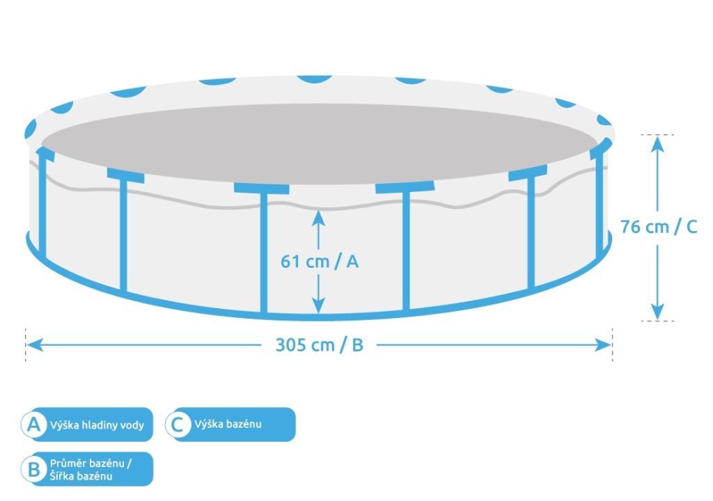 Piscina Florida este una dintre cele mai populare piscine supraterane din Republica Cehă. Toată lumea se poate bucura de înot în propria piscină. Avantajul piscinei Florida este prețul său avantajos, întreținerea ușoară. stabilitatea construcției, nivelul larg al apei și operarea ușoară. De la despachetarea piscinei puteți umple cu apă în doar 30 de minute. La sfârșitul sezonului, piscina trebuie curățată, golită și depozitată într-un loc uscat și ferit de îngheț. Întreținerea corespunzătoare va prelungi durata de viață a piscinei.