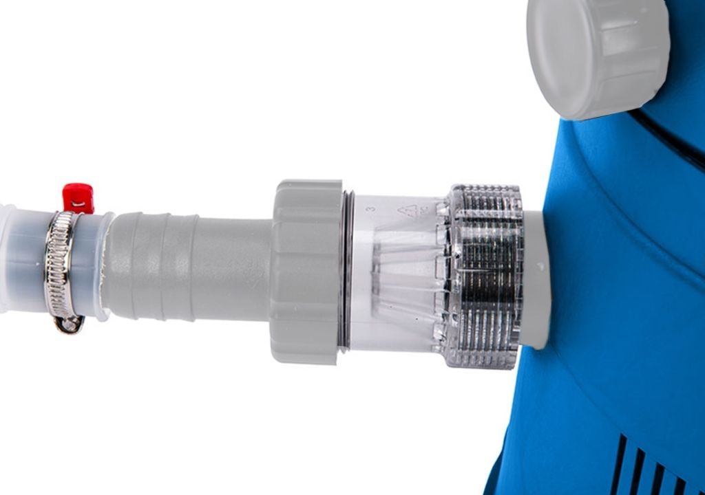 Conexiune pentru aspirator: Pentru a conecta aspiratorul, trebuie să achiziționați 1 bucată de adaptor pentru a conecta aspiratorul la skimmerul suspendat (skimmerul suspendat universal are un adaptor în pachet).