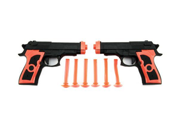 Pistoalele vor fi pe placul mai ales băieților care vor să joace polițiști adevărați. Acum nimeni nu va fugi de ei. Nimic nu se poate întâmpla copiilor atunci când se joacă cu pistoale și muniție, deoarece muniția este echipată cu ventuze. Copiii pot trage asupra unei ținte sau chiar asupra sticlei. Pistoalele sunt fabricate din plastic de înaltă calitate și nepericulos, rezistent la daune mecanice. Potrivit de la 3 ani.