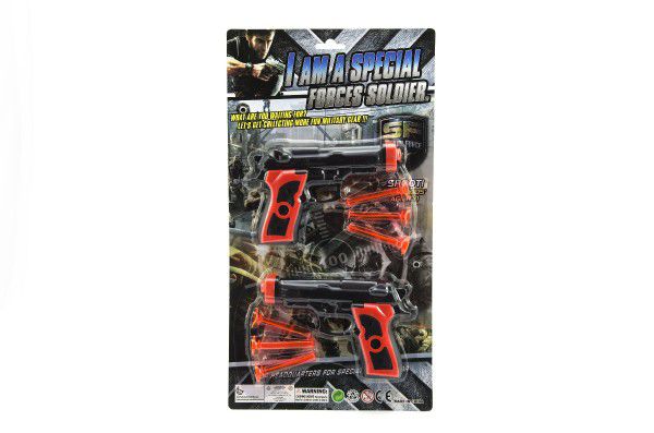 Pistol 2buc pe ventuze din plastic de 15cm pe card