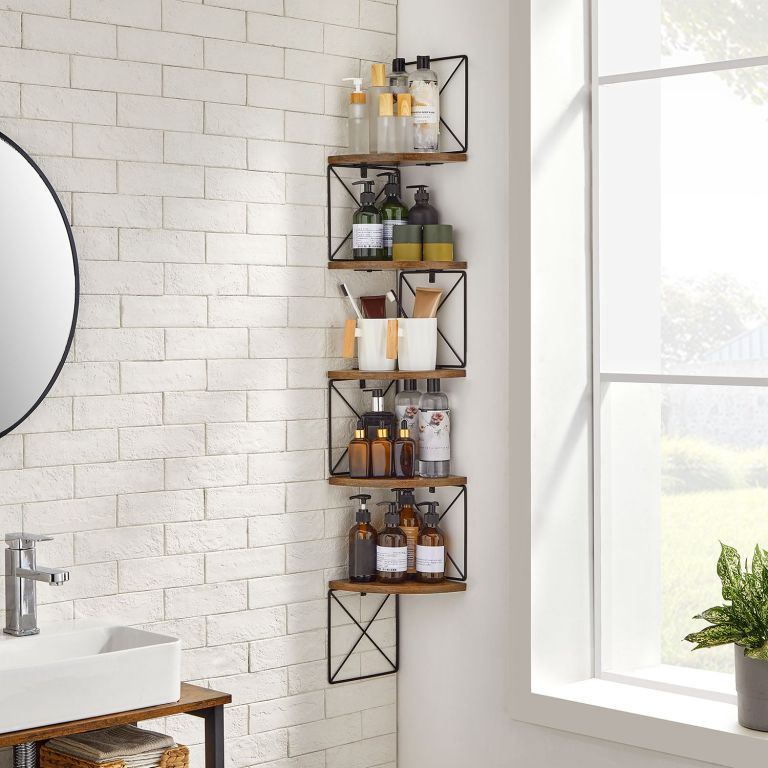 Poliță suspendată de colț VASAGLE, 5 rafturi, maro/negru