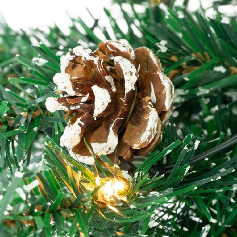 Un brad artificial de Crăciun mic și practic, cu iluminare, va înfrumuseța orice interior. Acesta este așezat într-un sac de iută, foarte frumos decorat cu conuri de pin și fructe de pădure și acoperit cu zăpadă artificială. Bradul este, de asemenea, completat cu 50 de luminițe.