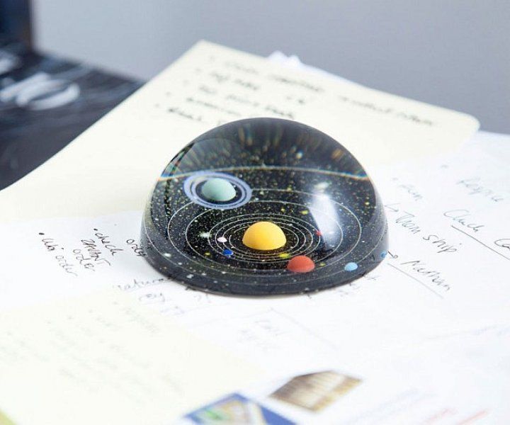 Aveți un teanc inimaginabil de hârtii pe birou și trebuie să vă organizați spațiul. O vei face cu siguranță cu frumosul nostru prespapier cu sistem solar, care va fi invidiat de toată lumea.