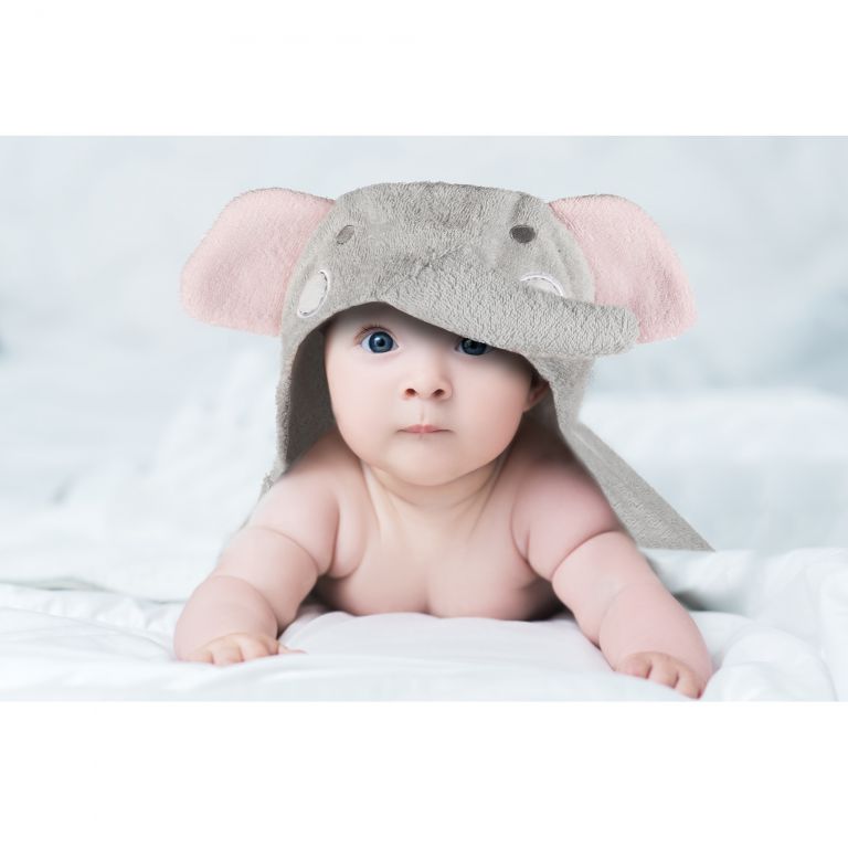 Prosop bebe cu glugă 76x76 cm - Elefant