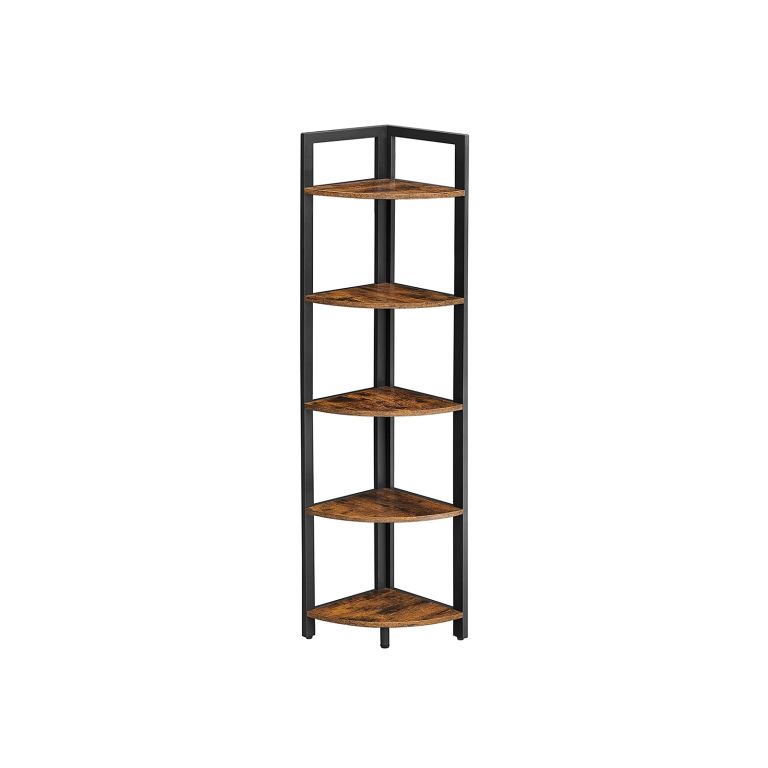 Raft colțar metalic cu 5 polițe, perfect pentru decor modern și organizare eficientă. Stabil și ușor de montat.