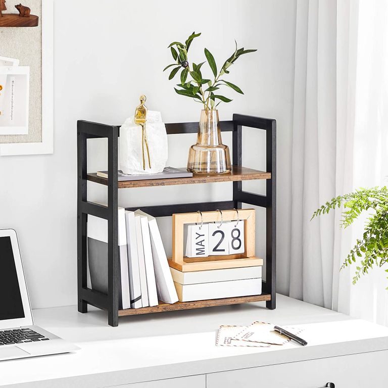 Raft condimente 2 etaje, bambus/MDF, maro rustic, 42x18x43cm