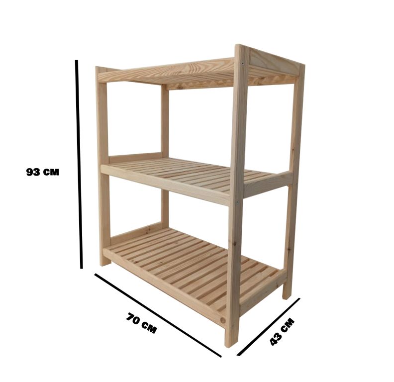 Raft robust din lemn de pin, 3 rafturi, montaj ușor, potrivit pentru orice încăpere.