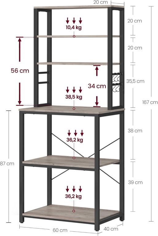Raft metalic bucătărie, 6 polițe, rustic, 60x40x167 cm