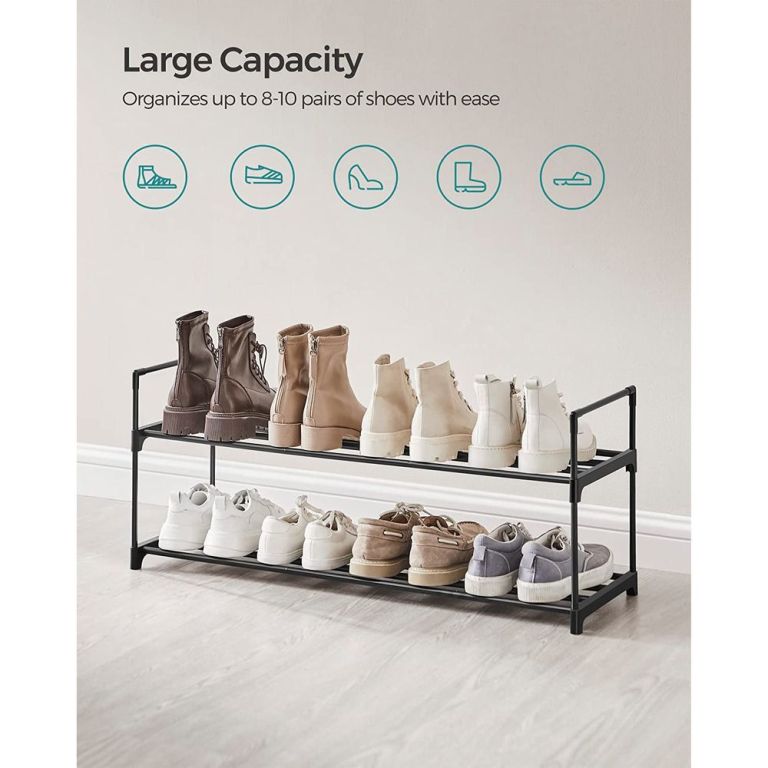 Fă-ți viața mai simplă și spațiul mai ordonat cu raftul metalic pentru pantofi SONGMICS. Designul său modern și practic se potrivește perfect în orice încăpere, oferind o soluție eficientă pentru depozitarea încălțămintei.