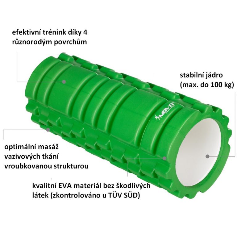 Rolă cilindru masaj - FITNESS ROLLER MOVIT verde