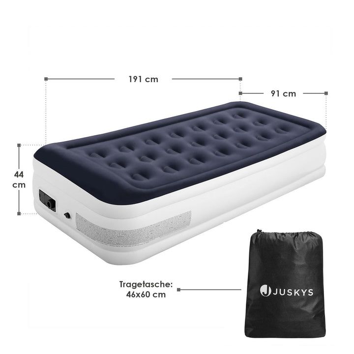 Construcția robustă și materialul impermeabil asigură durabilitate și rezistență. Pompa electrică integrată umflă rapid salteaua, iar dimensiunile compacte permit transportul facil în geanta inclusă. Capacitate de încărcare de 150 kg și întreținere ușoară.