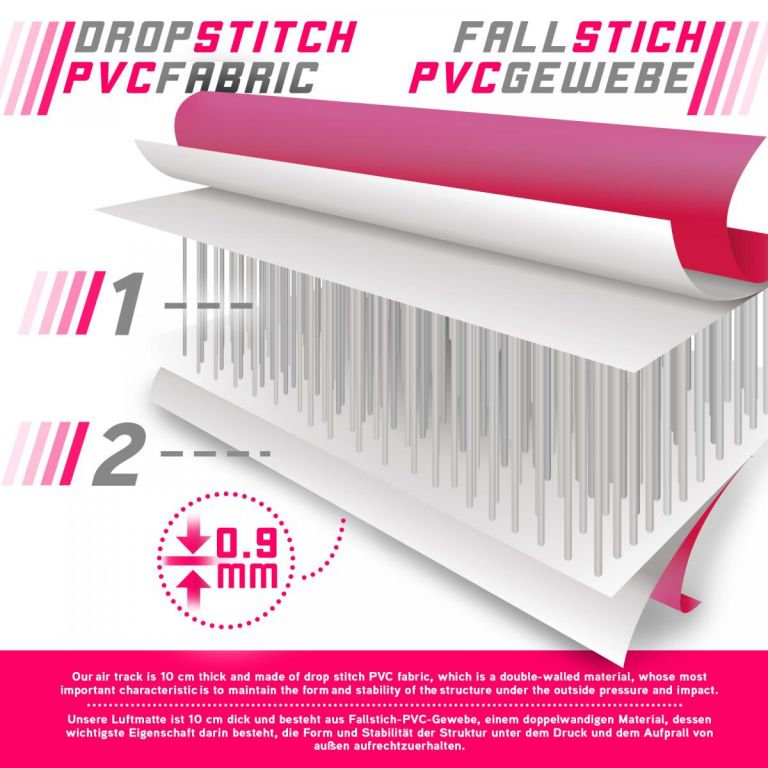 Salteauaa de gimnastică gonflabilă este un instrument de antrenament versatil, potrivit pentru o gamă largă de activități sportive, cum ar fi gimnastica, majoretele, parkour, artele marțiale, sporturile școlare și multe altele. Poate fi folosit și în piscină. Acest covor este fabricat din material cu pereți dubli, a cărui caracteristică principală este de a menține forma și stabilitatea structurii sub presiune externă și impact.