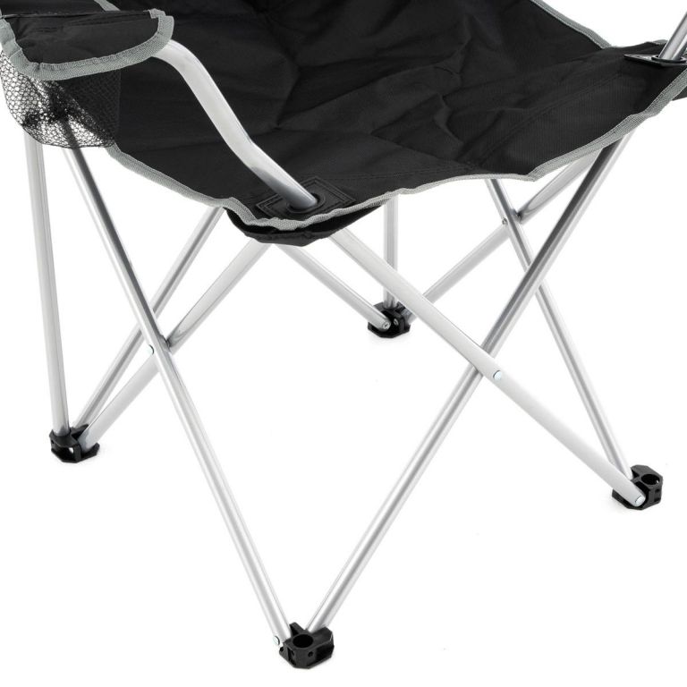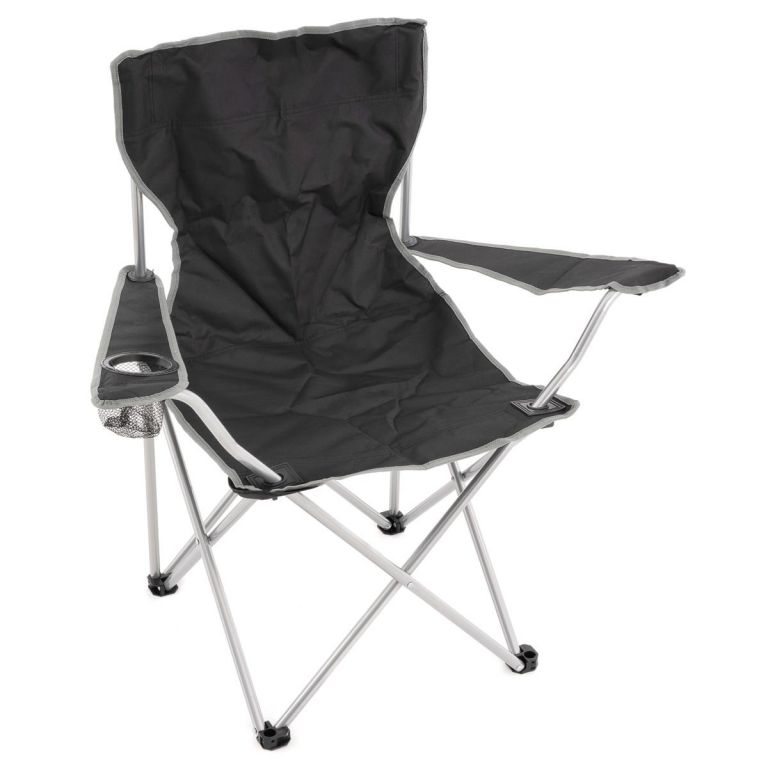 Scaun de camping pliabil cu suport pentru pahare, negru