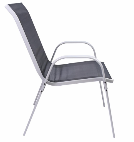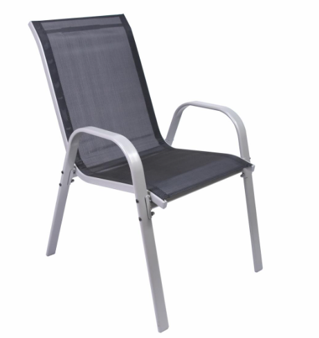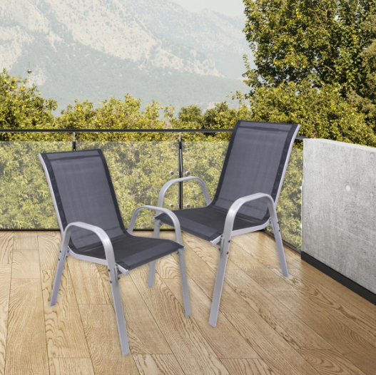 Lăsați-vă sedus de confortul scaunului de exterior BARI – țesătură neagră, cadru din oțel, rezistent și stivuibil. Ideal pentru balcoane și terase.
