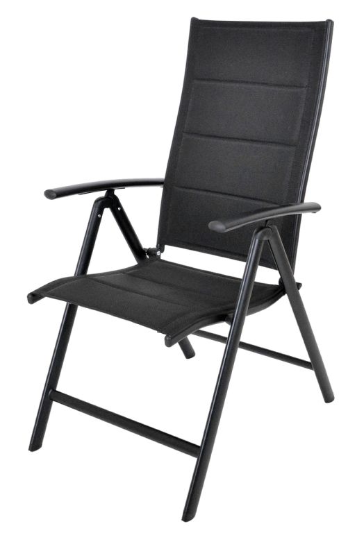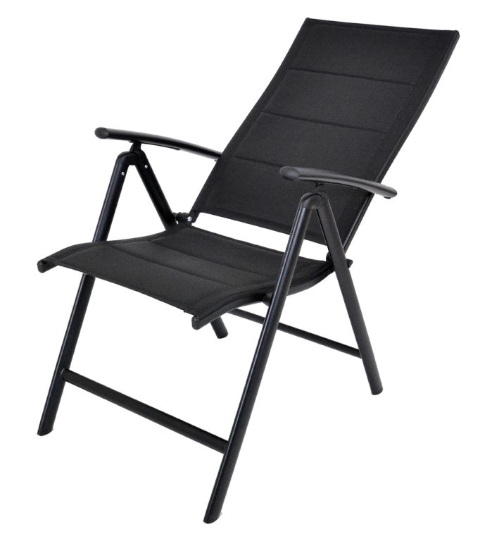 Scaun exterior pliabil din aluminiu, spătar reglabil, negru