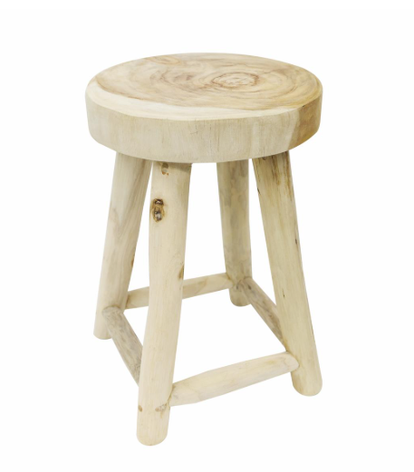 Scaun taburet rotund din tec, lucrat manual, ideal pentru orice încăpere. Unic și rezistent.