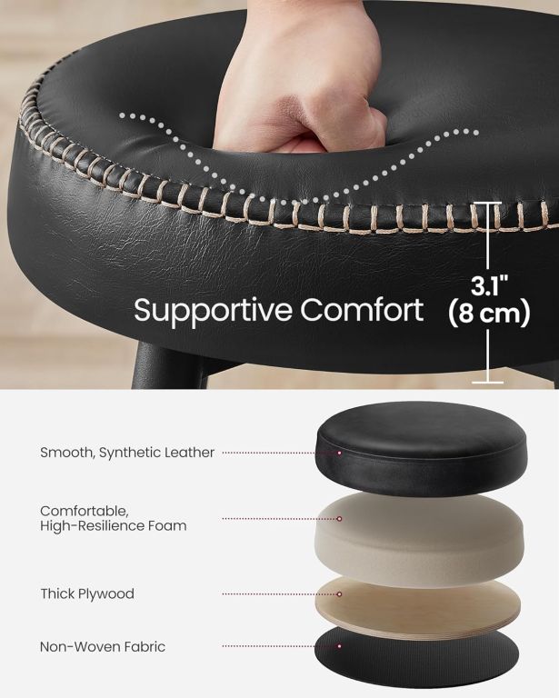 Scaunele sunt dotate cu tapițerie rezistentă din piele PU și picioare metalice solide cu capete antiderapante. Perna groasă asigură confort chiar și la șederi îndelungate, iar întreținerea ușoară vă economisește timp. Montajul este rapid și simplu datorită instrucțiunilor și accesoriilor incluse.