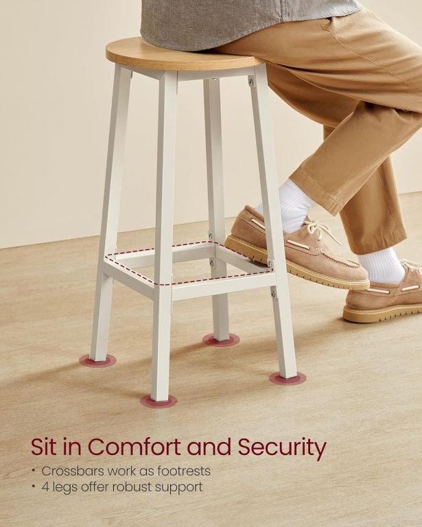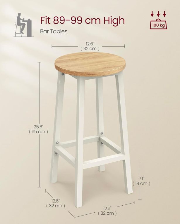 Adaugă un stil atemporal bucătăriei sau zonei de dining cu aceste scaune de bar VASAGLE. Combinația de cadru metalic alb și șezut bej cu decor stejar alb creează o atmosferă elegantă și naturală, potrivită atât pentru interioare moderne, cât și clasice. Dimensiunile compacte permit introducerea ușoară sub masă, economisind spațiu prețios.