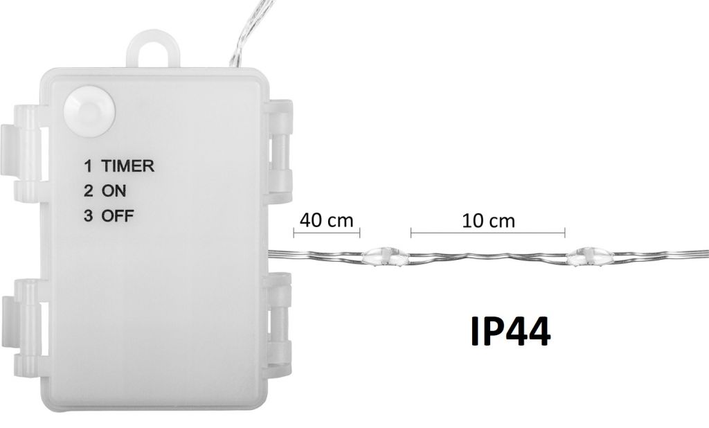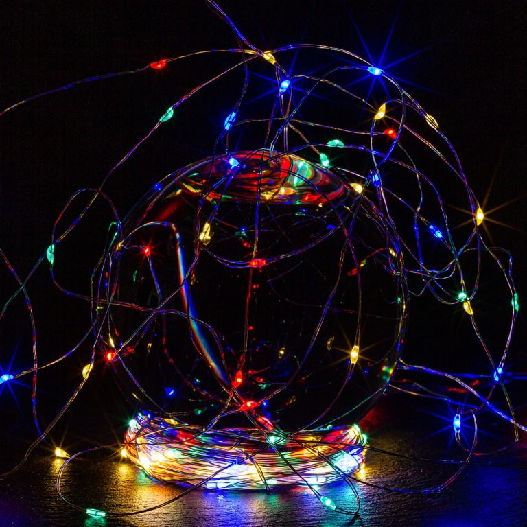 Lanțurile cu lumini LED sunt potrivite pentru decorarea bradului de Crăciun, balconul, terasa și grădina. LED-urile multicolore sunt situate pe un fir subțire de argint, astfel încât iluminatul este foarte discret. Lanțul de Crăciun include, de asemenea, un cronometru - luminile se vor aprinde și se vor stinge automat. Va fi întotdeauna pornit timp de 6 ore și 18 ore va fi oprit.