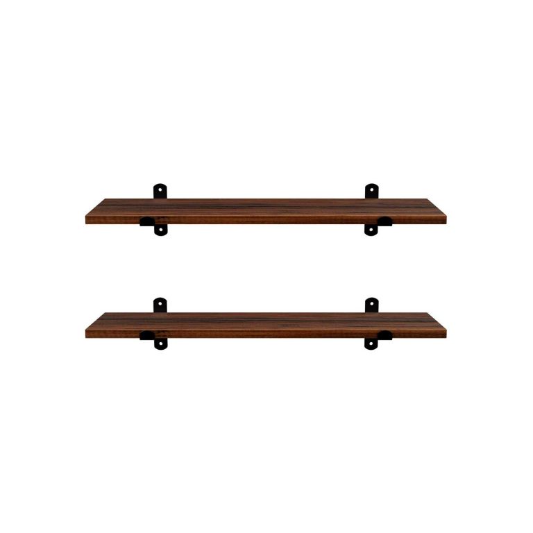 Transformați orice cameră cu acest set de două rafturi de perete în stil retro, care adaugă un farmec aparte și creează spațiu pentru decorațiuni, cărți sau obiecte personale. Combinația de lemn închis și suporturi metalice negre aduce un plus de eleganță și modernitate, potrivindu-se perfect în dormitor, living sau hol.