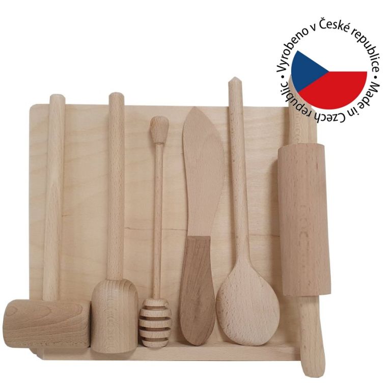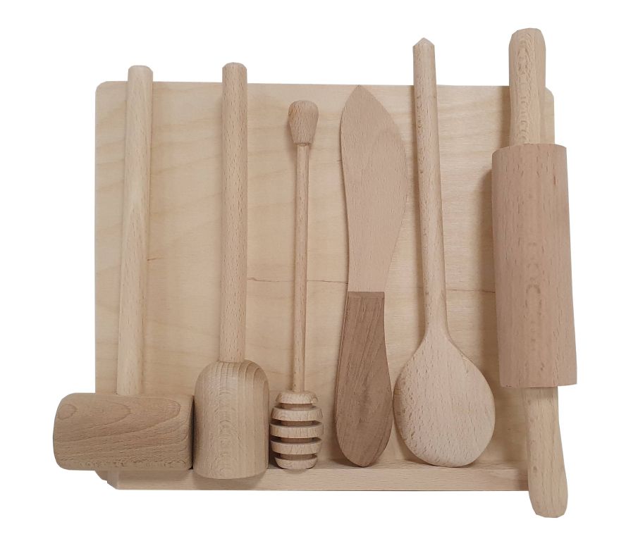 Set bucătărie din lemn natural, 7 ustensile, fag