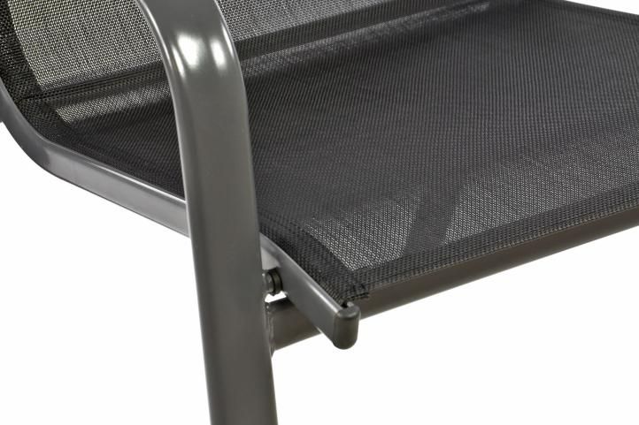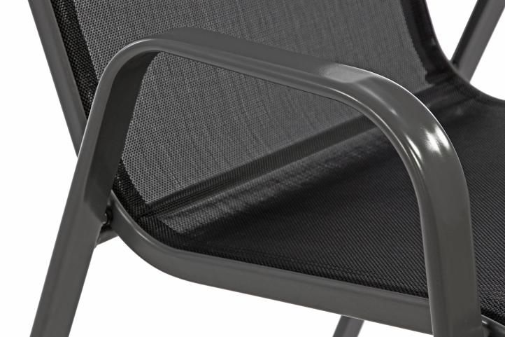 Scaunul confortabil stivuibil din oțel robust este ideal pentru utilizare în interior și exterior. Scaunul și spătarul sunt acoperite cu țesătură elastică neagră. Culoarea cadrului este antracit.