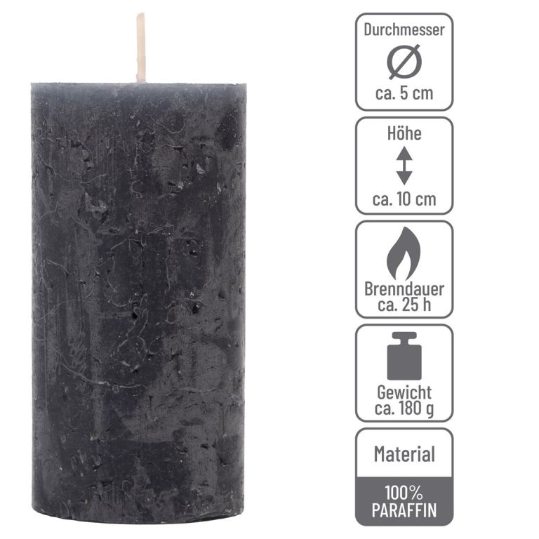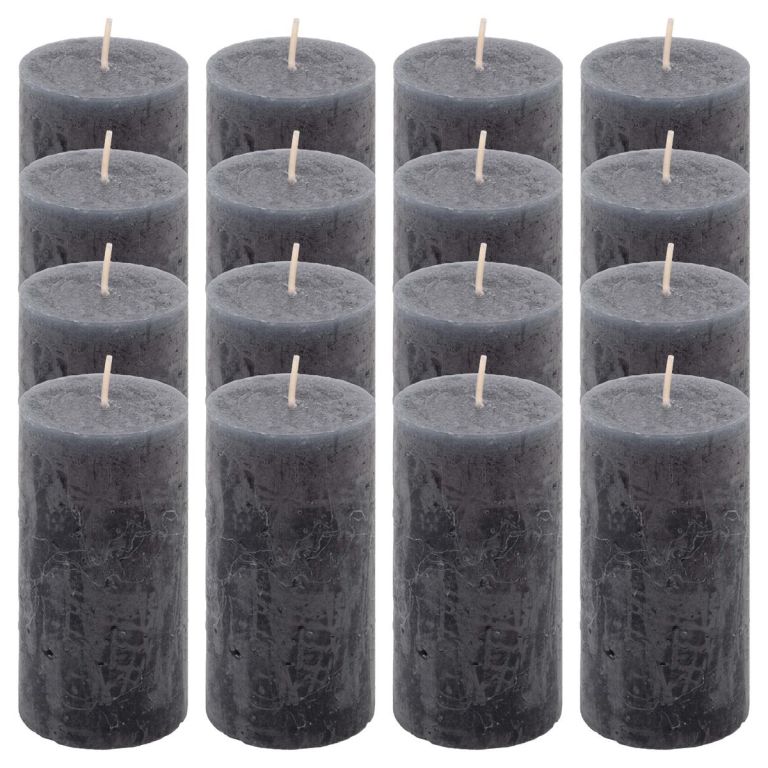 Set de lumânări rustice, 10 cm, Ø 5 cm, antracit, 16 buc.