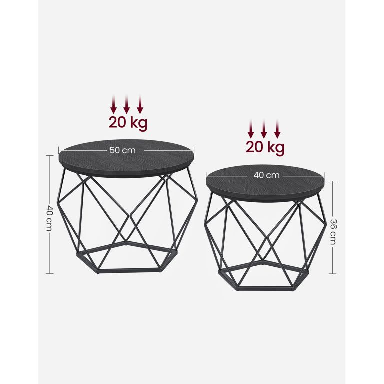 Set mese cafea negre, design geometric, PAL și oțel, 2 bucă