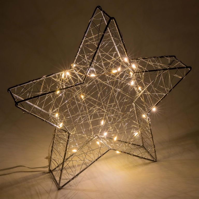 Steaua metalică de Crăciun cu efect 3D - gri, 25 LED-uri