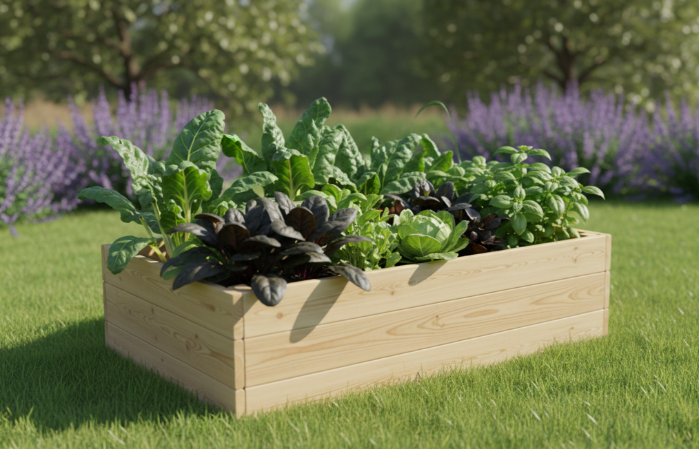 Strat de grădină înălțat, lemn de larice siberian, montaj rapid, rezistent la intemperii.