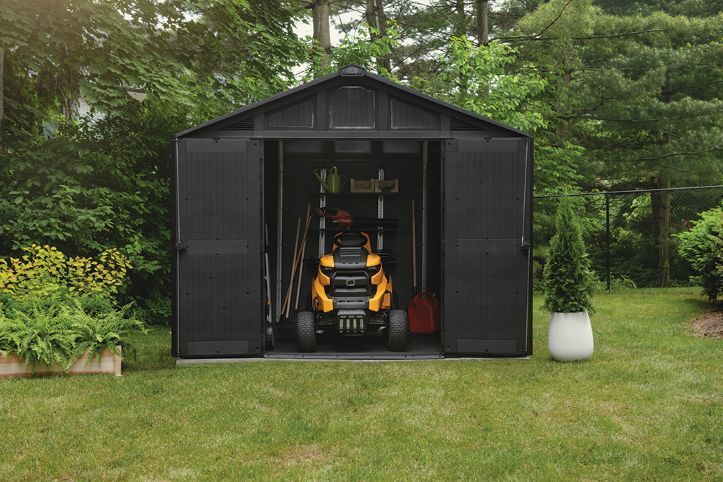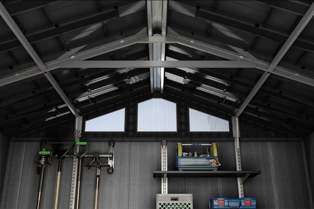 Cu ușile duble largi, adăpostul poate depozita biciclete, mașina de tuns iarba, uneltele, echipamentele de tâmplărie sau o mulțime de alte accesorii de grădină.